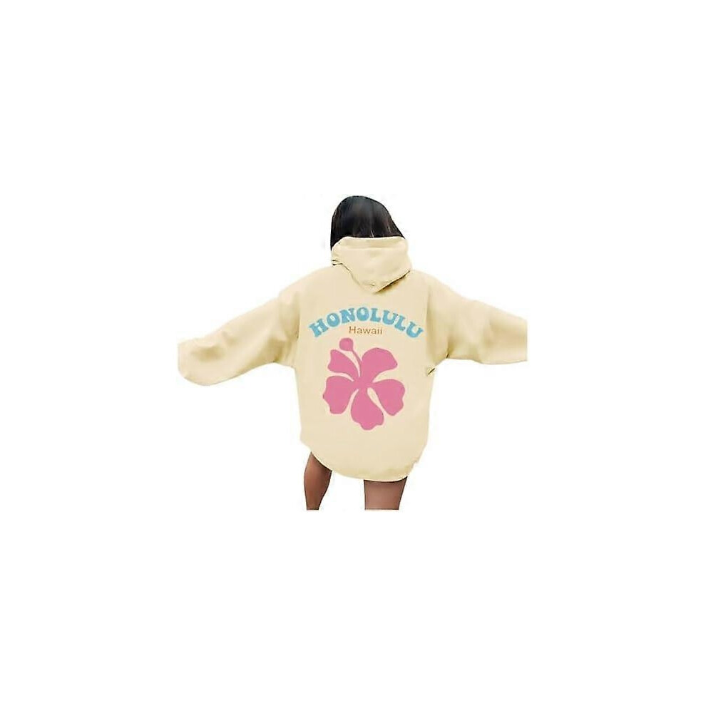 (01-beige, XXL) Womens Pink Palm Puff Hoodie Preppy Sweatshirt Women Oversized Graphic Hoodie Long Sleeve Hoodies Sweatshirts