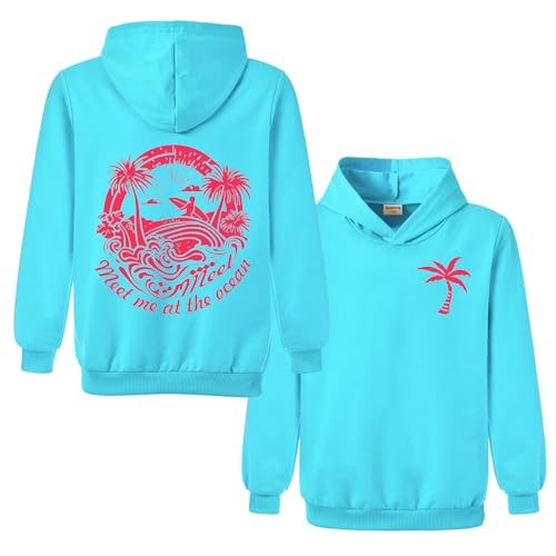 Xpialong Gifts Pink Hoodie Palm Boys Girls Pullovers Hoodies Children's Tops Jumper (Light Blue,12-13 Years,12 Years,13 Years)