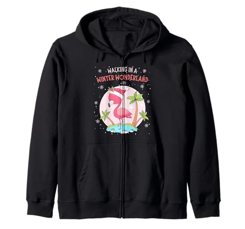 Funny Pink Flamingo Christmas Palm Tree Santa Snowflake Xmas Zip Hoodie