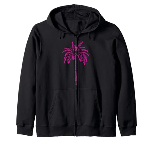 Pink Palm Beachwear Beach Outfit Surfing Retro Palm Tree Zip Hoodie