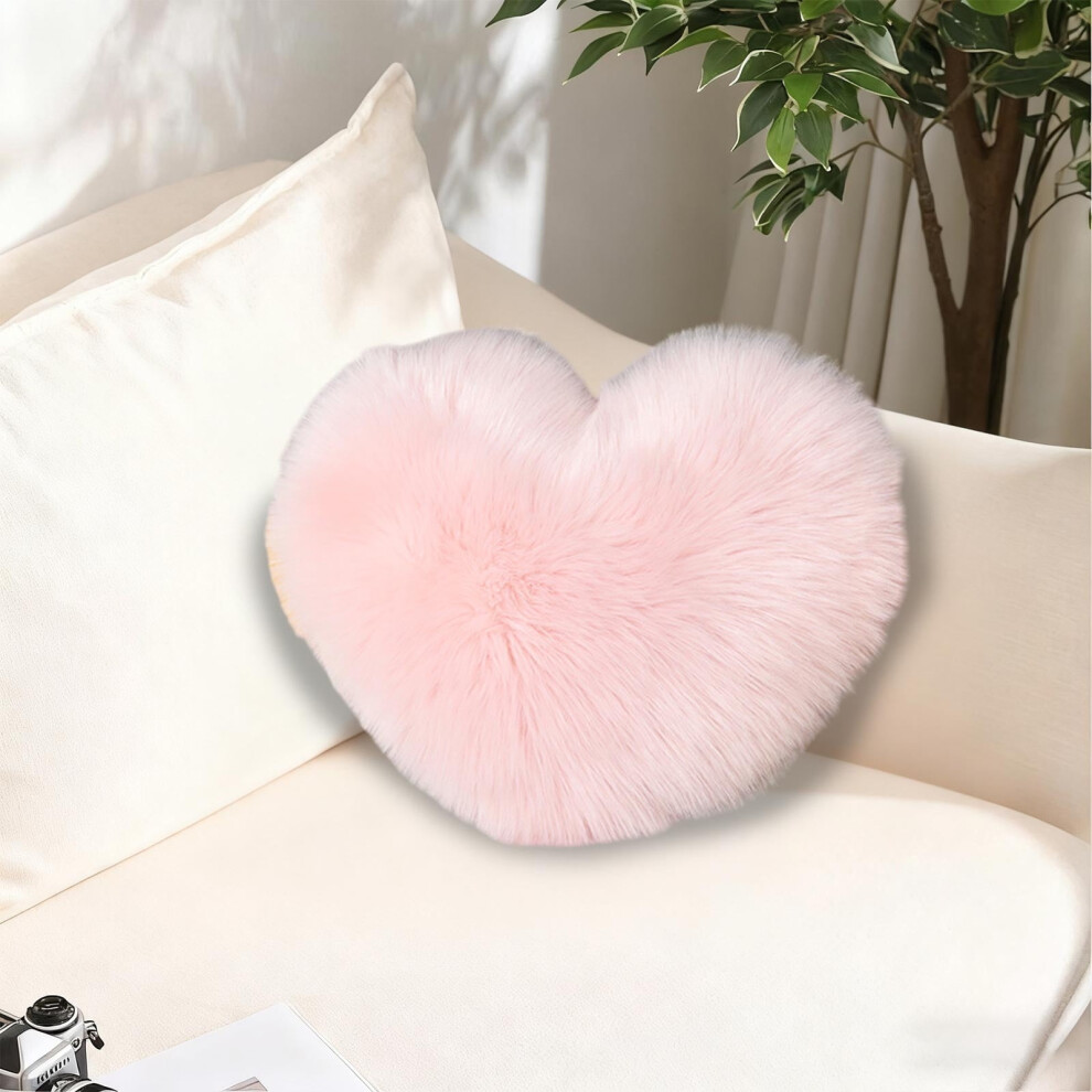 Light Pink Heart Pillows, Faux Fur Plush Decorative Throw Cushions for Bed, Chair, Sofa â 11.8", Compatible with Home Decor