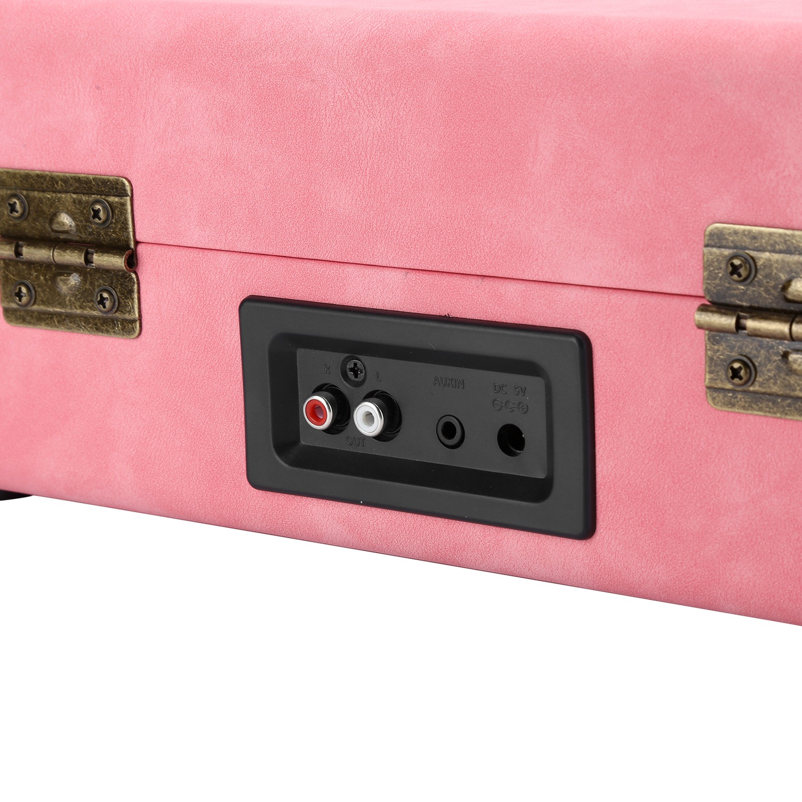 (pink UK) Record Player Portable Vintage Phonograph Record Player
