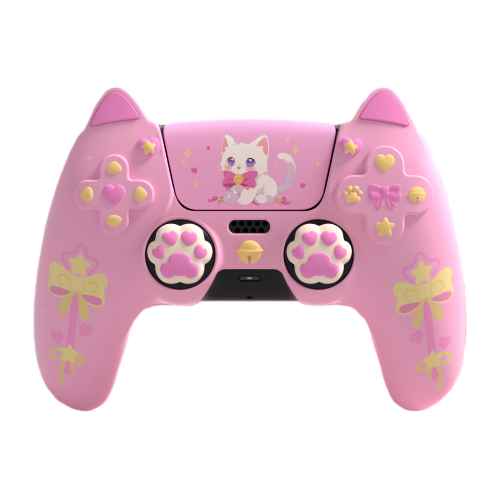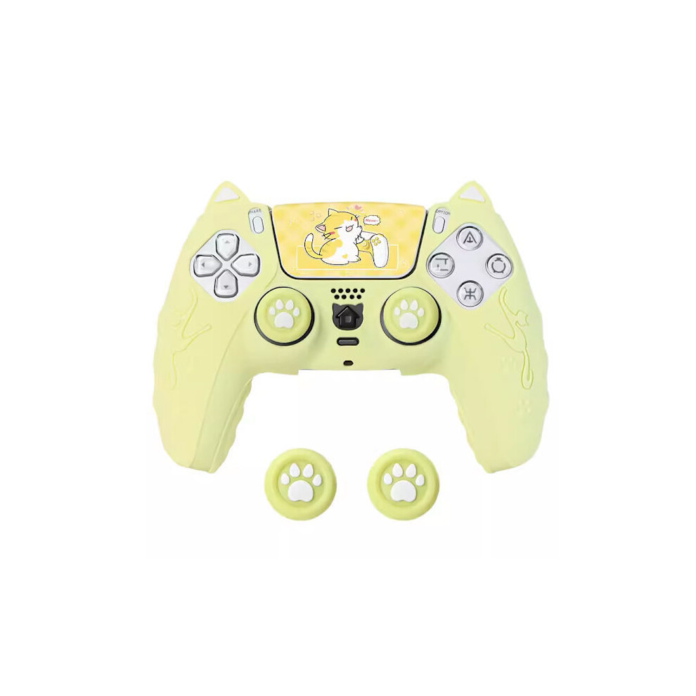 Pink Cat Paw PS5 Controller, Set with Hand Grip, Non-Slip Silicone Cover, Protective Case with Joystick Yellow