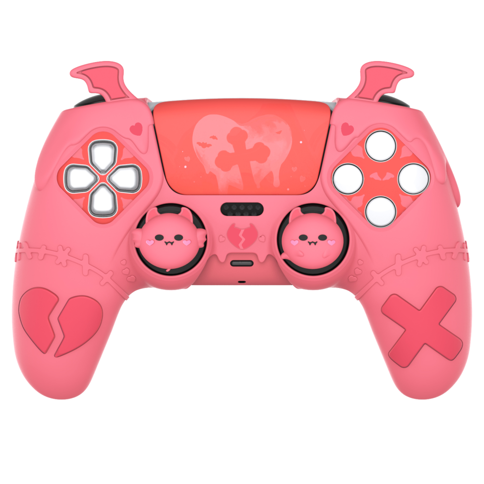 Silicone Case and Joystick Caps for PS5 DualSense Controller - Little Demon Pink