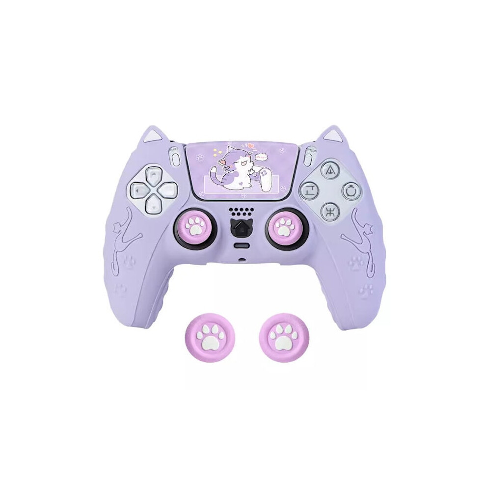 Pink Cat Paw PS5 Controller, Set with Hand Grip, Non-Slip Silicone Cover, Protective Case with Joystick Purple