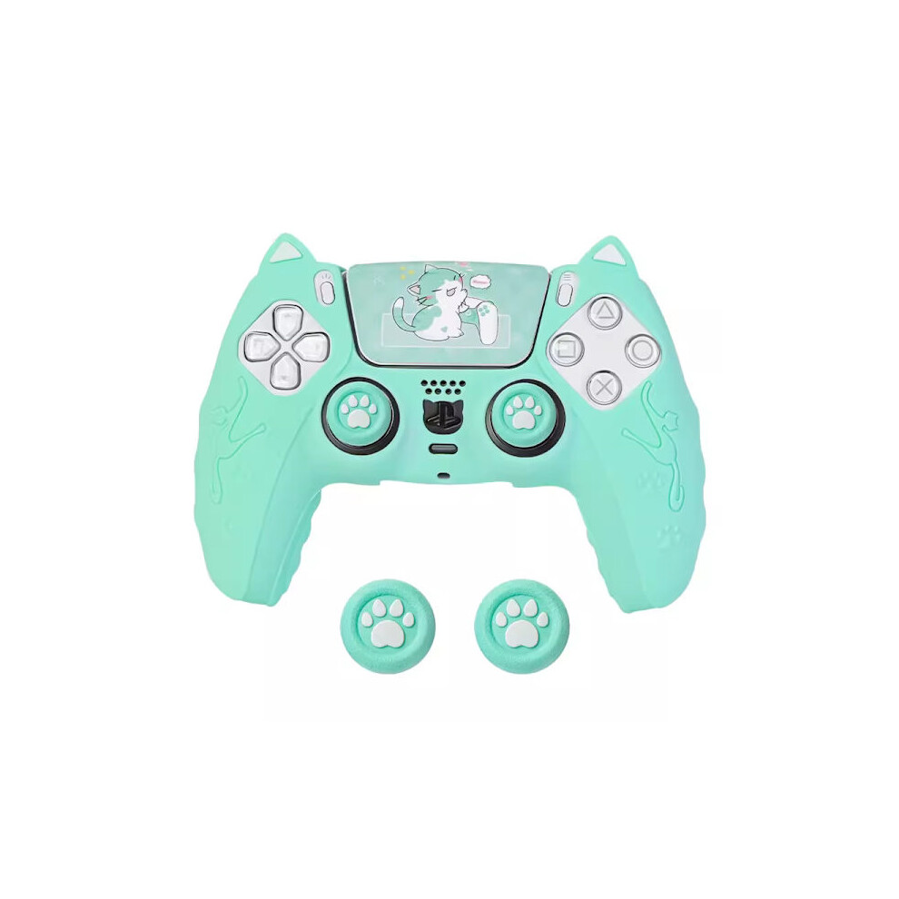 Pink Cat Paw PS5 Controller, Set with Hand Grip, Non-Slip Silicone Cover, Protective Protective Case with Joystick Green