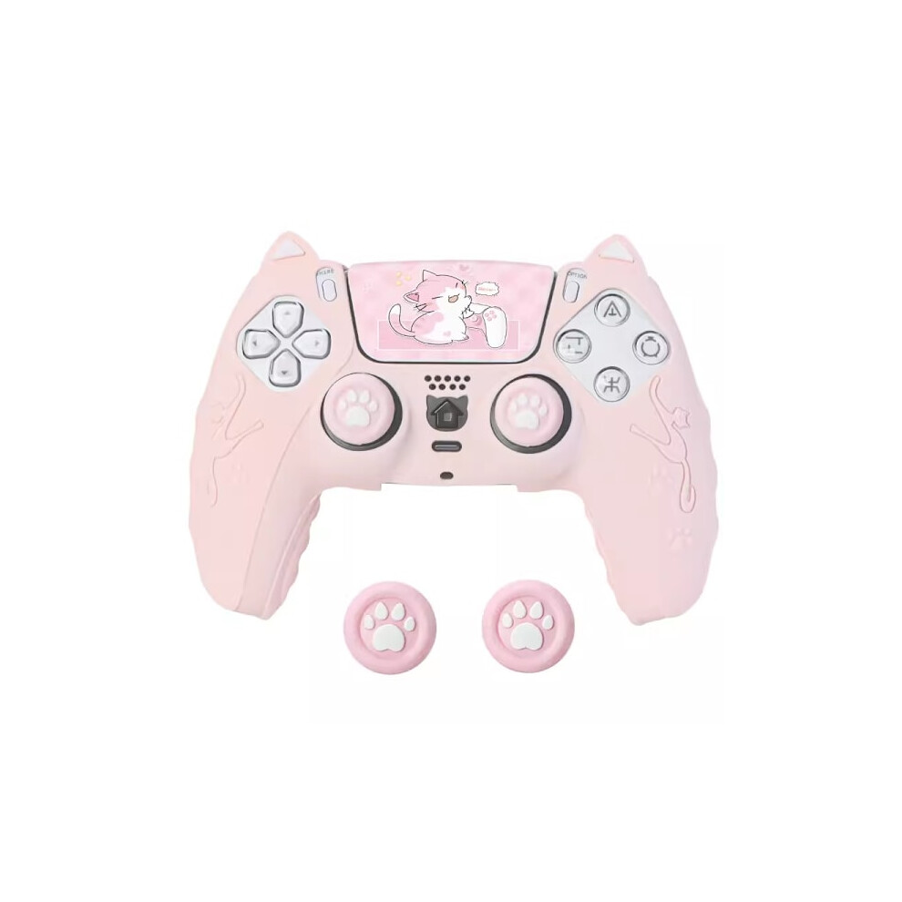 Pink Cat Paw PS5 Controller, Set with Hand Grip, Non-Slip Silicone Cover, Protective Protective Case with Joystick Pink