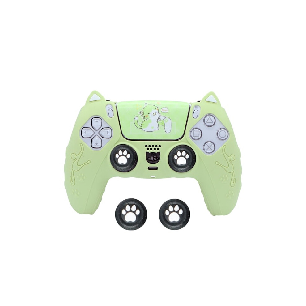 Pink Cat Paw PS5 Controller, Set with Hand Grip, Non-Slip Silicone Cover, Protective Case with Joystick Grass Green
