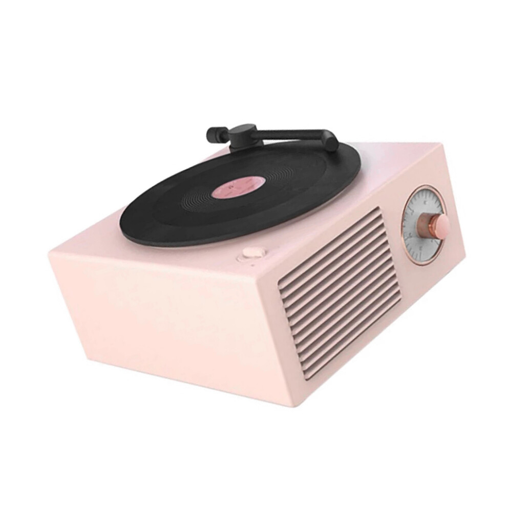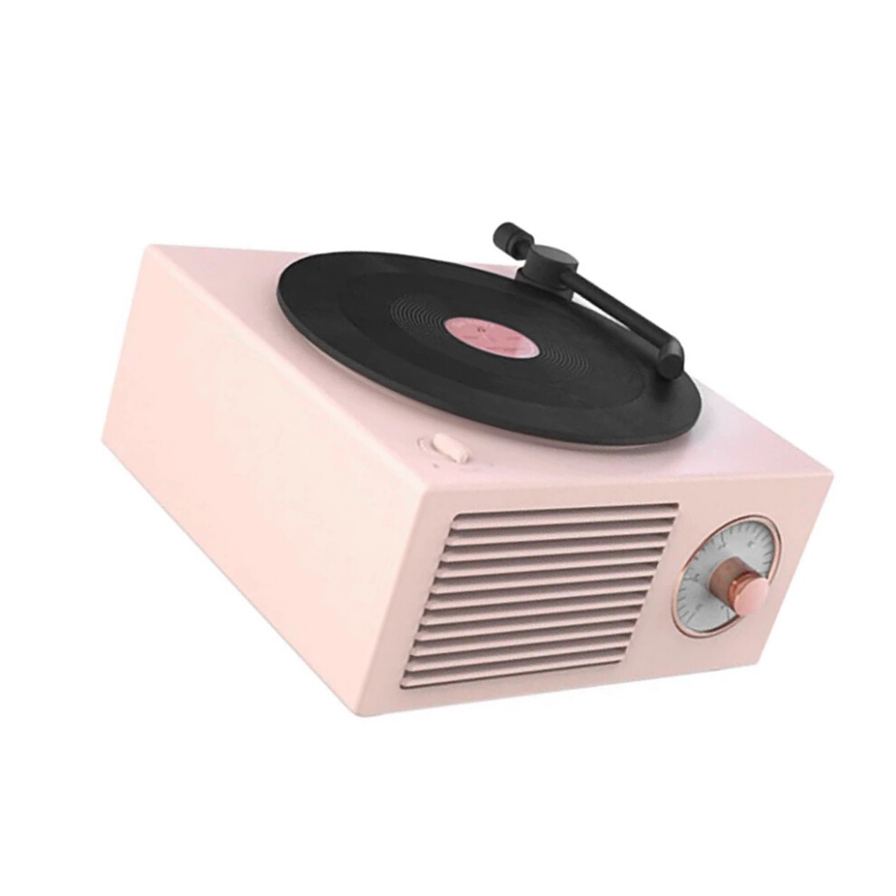 (Pink) Turntable Wireless Speaker Vintage Sound Box Outdoor Record Player