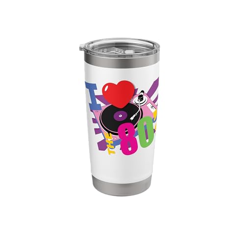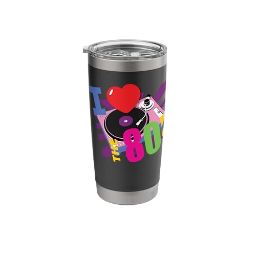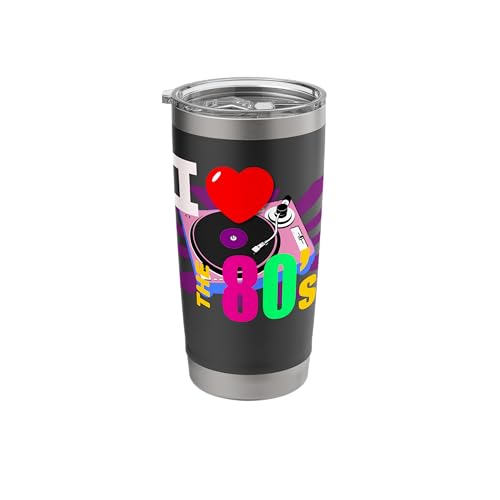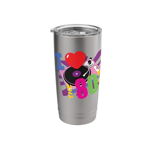 I Love The 80's Retro Pink Record Player Fun Vinyl Theme Stainless Steel Insulated Tumbler