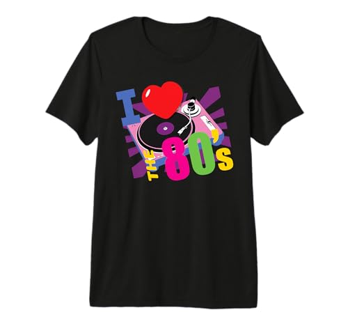 I Love The 80's Retro Pink Record Player Fun Vinyl Theme Premium T-Shirt