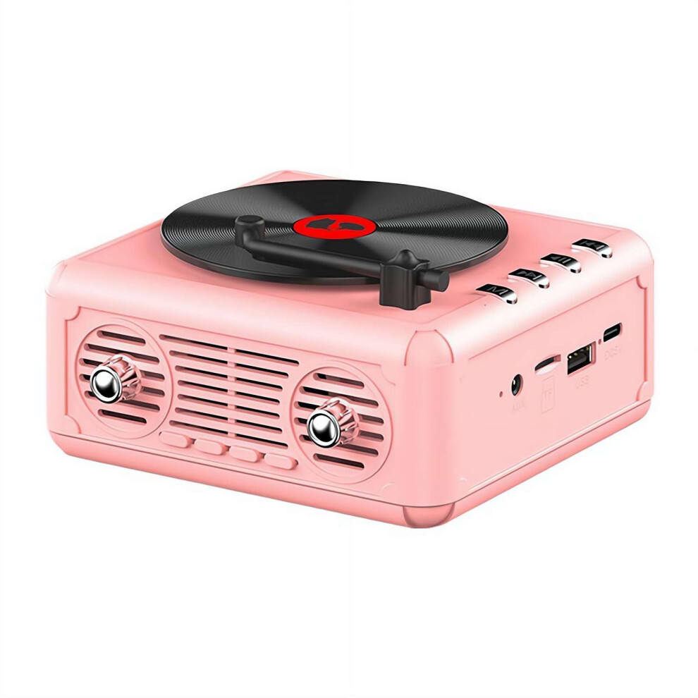 Retro Record Player Bluetooth Speaker Pink Portable HiFi FM Radio Bluetooth 5.0 TF Card Playback AUX 1000mAh Battery