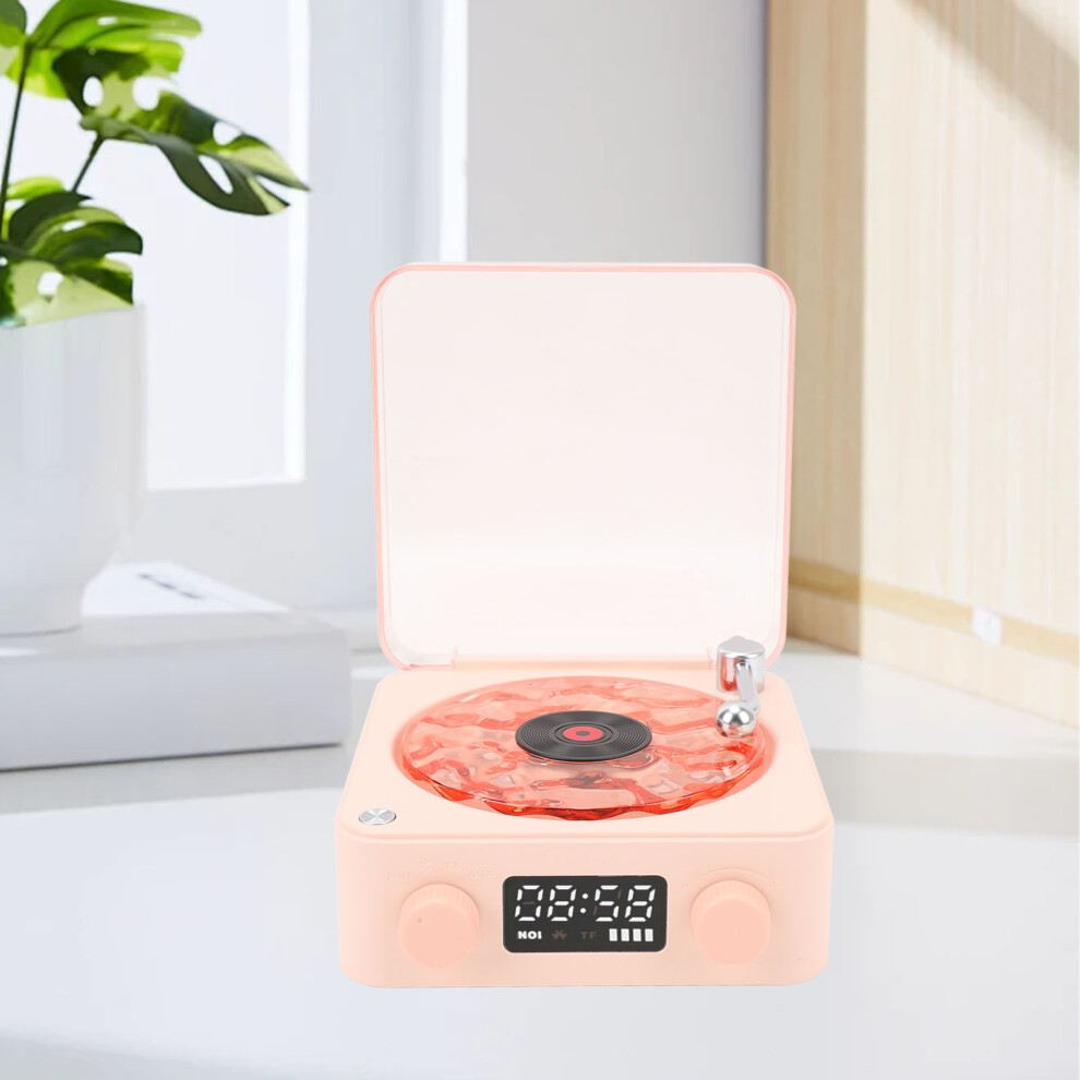 Vintage Pink Bluetooth Record Player 4 Modes Portable Speaker with Clock