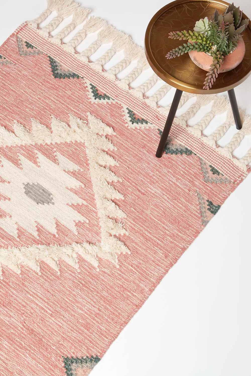 Habitat Octo Geometric Pink Cotton Flatweave Rug - 180x120cm