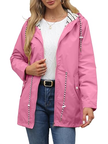Rapbin Lightweight Rain Jacket Women Waterproof Breathable Spring Summer Jackets Camping Running Raincoat Windbreaker(Pink,M)