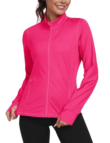 MoFiz Women's Running Jackets with Thumb Hole Microfleece Sport Jacket with Zip Pocket Pink L