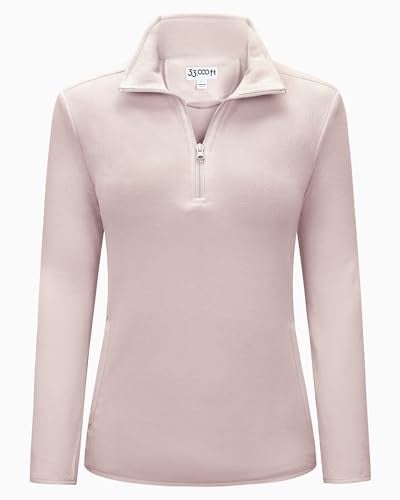 33,000ft Women's Half Zip Fleece Pullover Ladies Warm Fleece Jacket Soft Microfleece Ski Jackets Breathable Outerwear with A Big Pocket for Travelling Running Outdoor Sport Pink 10