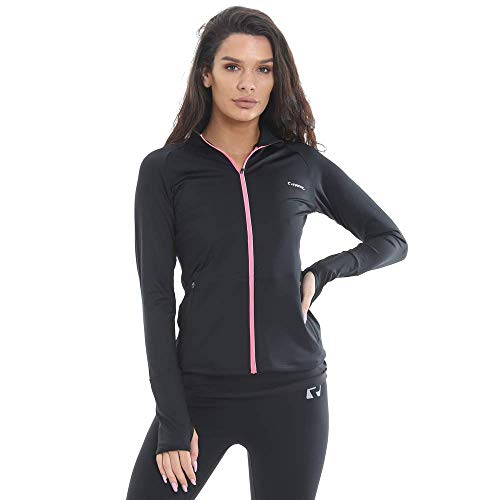 Ript Performance Women's Technical Breathable Running Gym Training Performance Zip Up Sports Jacket Black/Pink, X-Small, Top