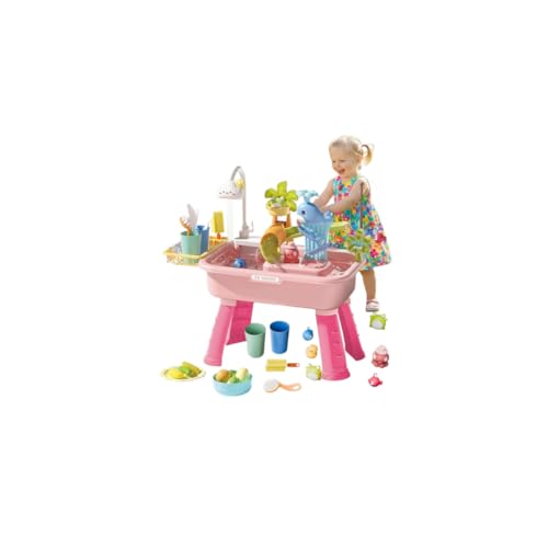 Guohetuk Play Table Playset with Water And Sand, Complete with Kitchen Accessories, Removable Legs, Water Circulation, Dishwasher Material, Pink