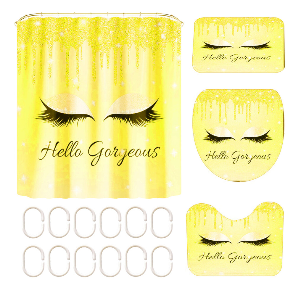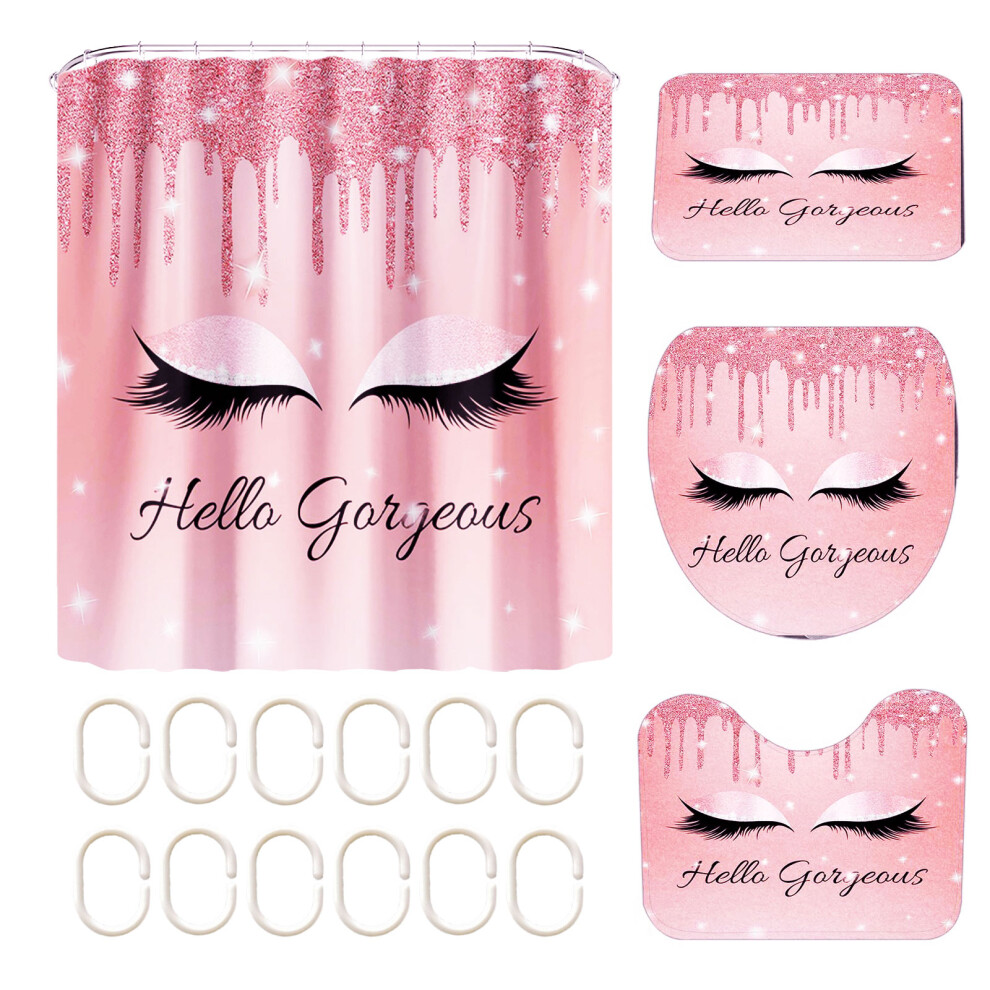 Luxurious Decorative Bathroom Rug Set, Coral Pink Polyester Fabric Shower Curtain with Non-Slip Bath Mat Sets, Printed Bath Decor for Modern Home