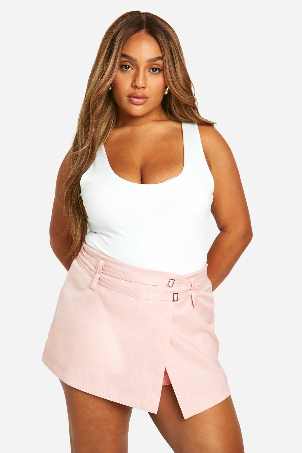 Pink Drop Waist Belt Detail A Line Skort Playsuit
