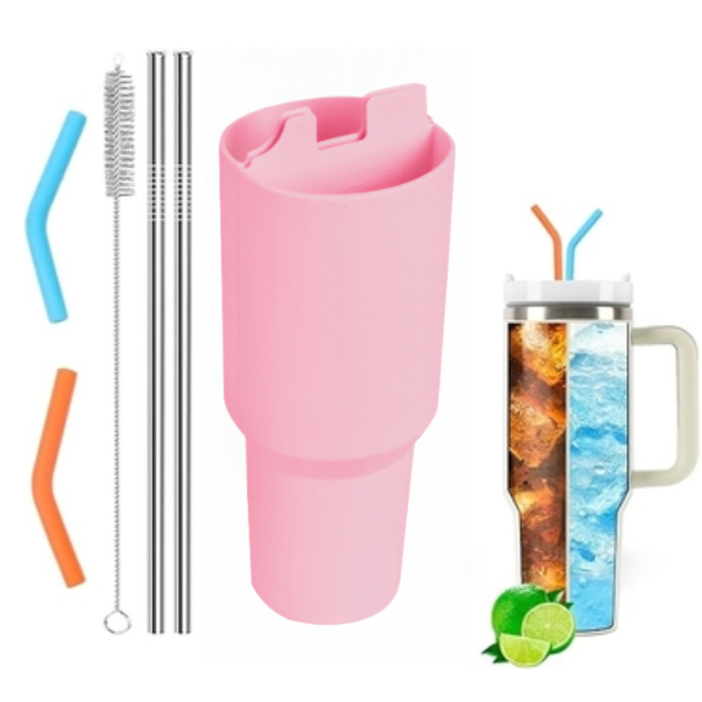 Stanley Cup Silicone Inner Liner + 2 Straws + 2 Straw Sleeves + Brush Set (Pink + 2 Straws + 2 Straw Sleeves + Brush)