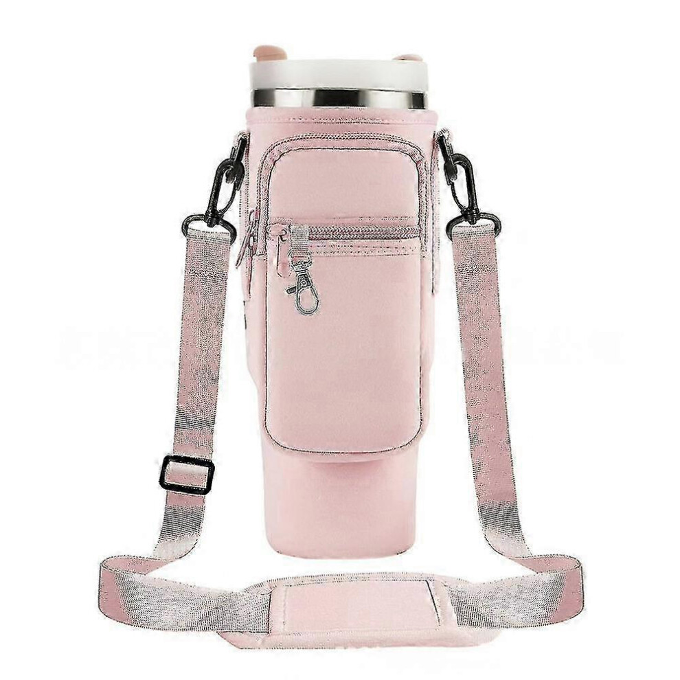 Pink Water Bottle Carrier Bag Holder With Adjustable Strap Fits Stanley 40oz Tumbler Cup Holder