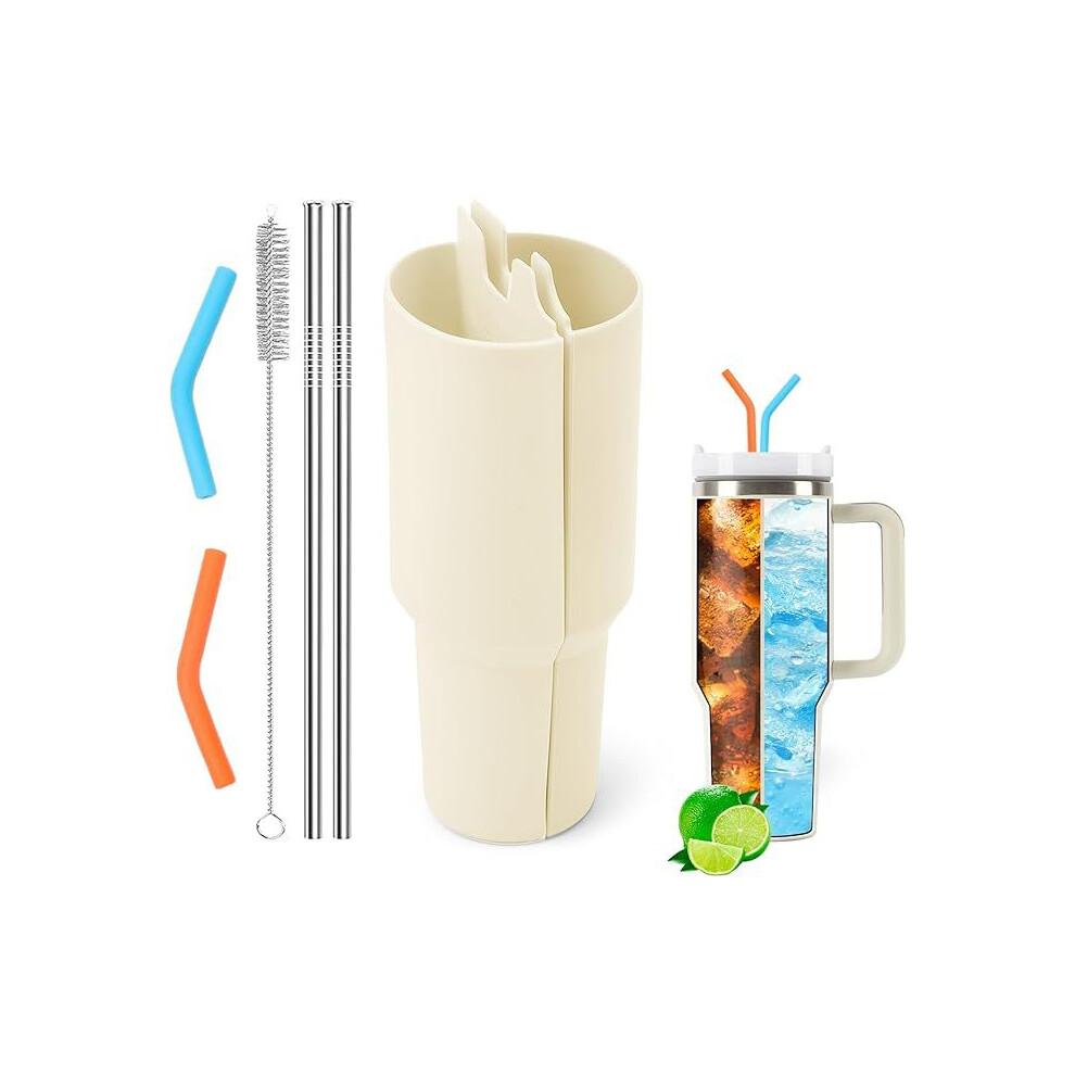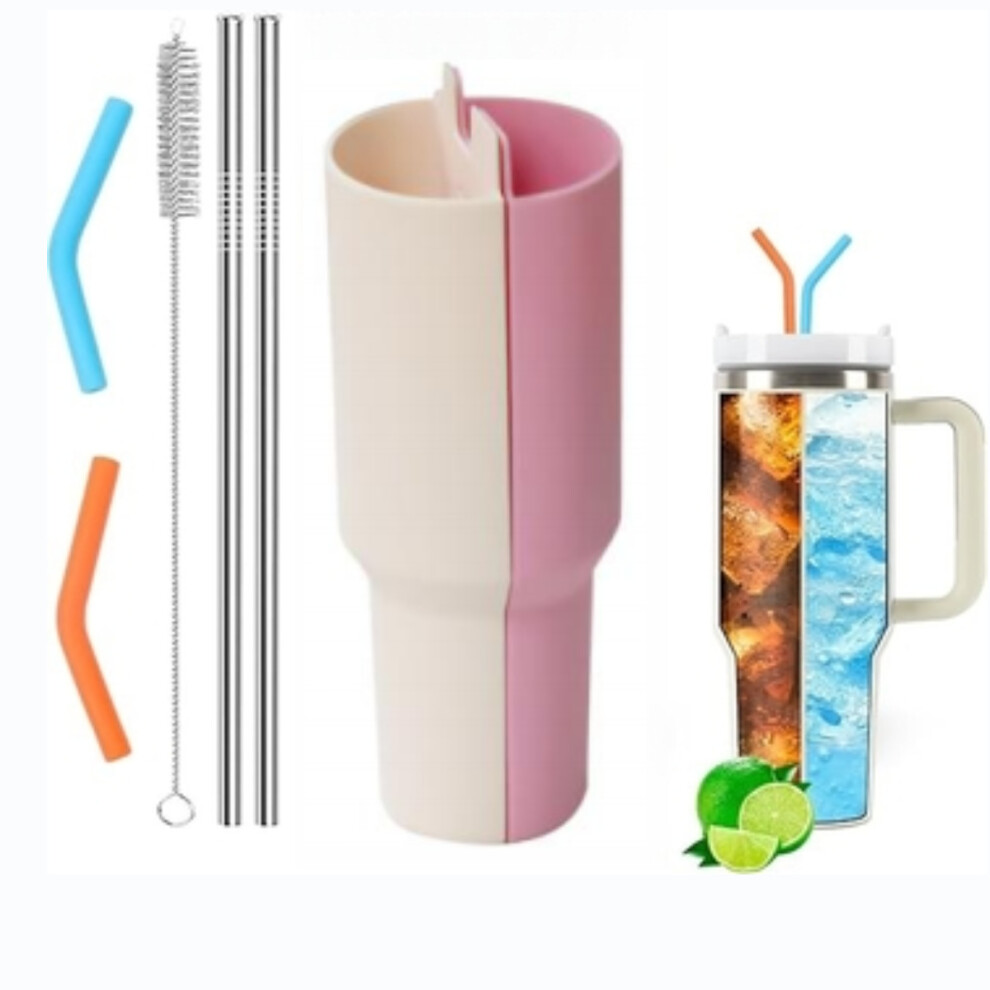 (Pink) For Stanley 40oz Cup 2-Divided Silicone Liner 2 Compartment Water Cup Lining (BPA Free,No FDA)
