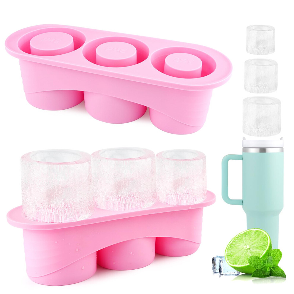 Stanley Cup Ice Cube Tray, Silicone Mold with Lid, BPA Free, Pink