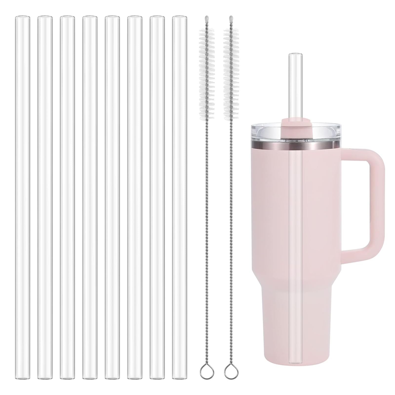 8 pcs 31 cm Straws for Stanley Cup, Reusable Glass 31 x 1 cm, Clear, Pink