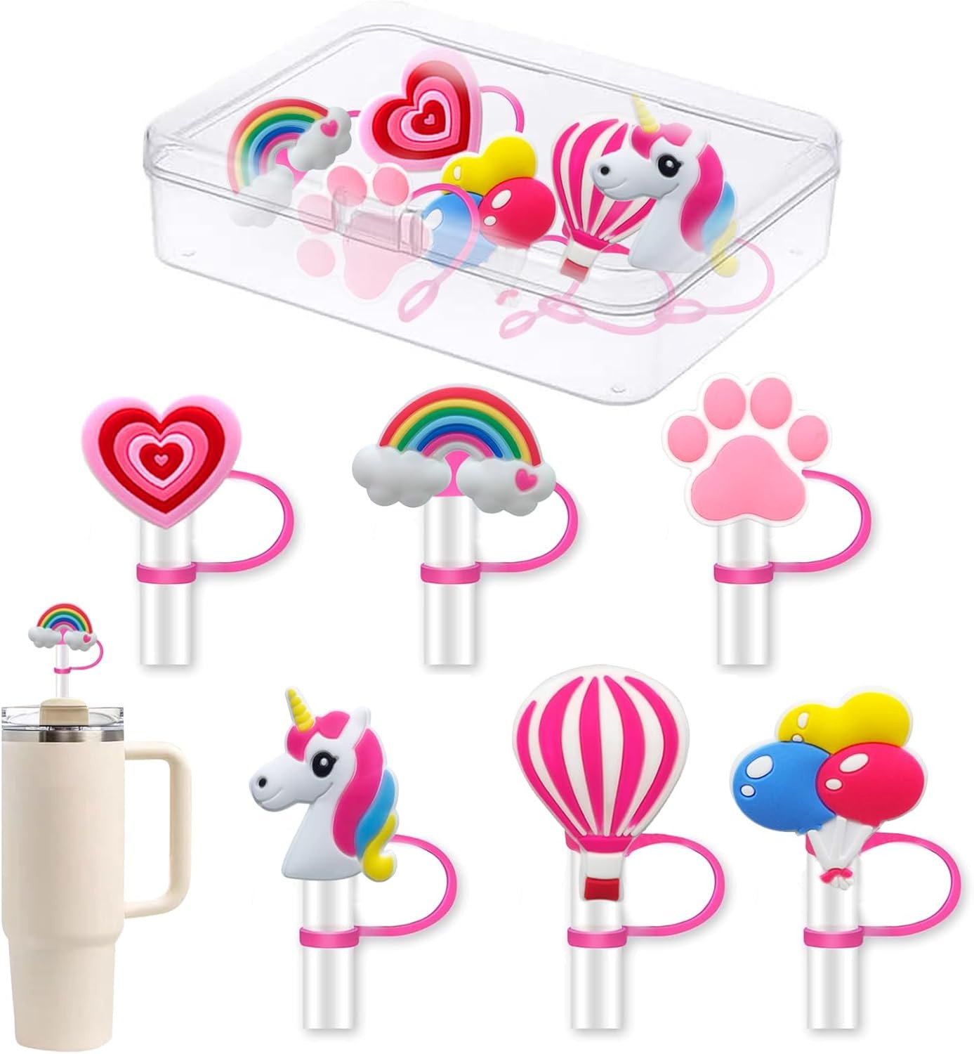 Jatidne 6pcs Straw Cover Cap for Stanley Cup, Pink Reusable Silicone Straw Toppe