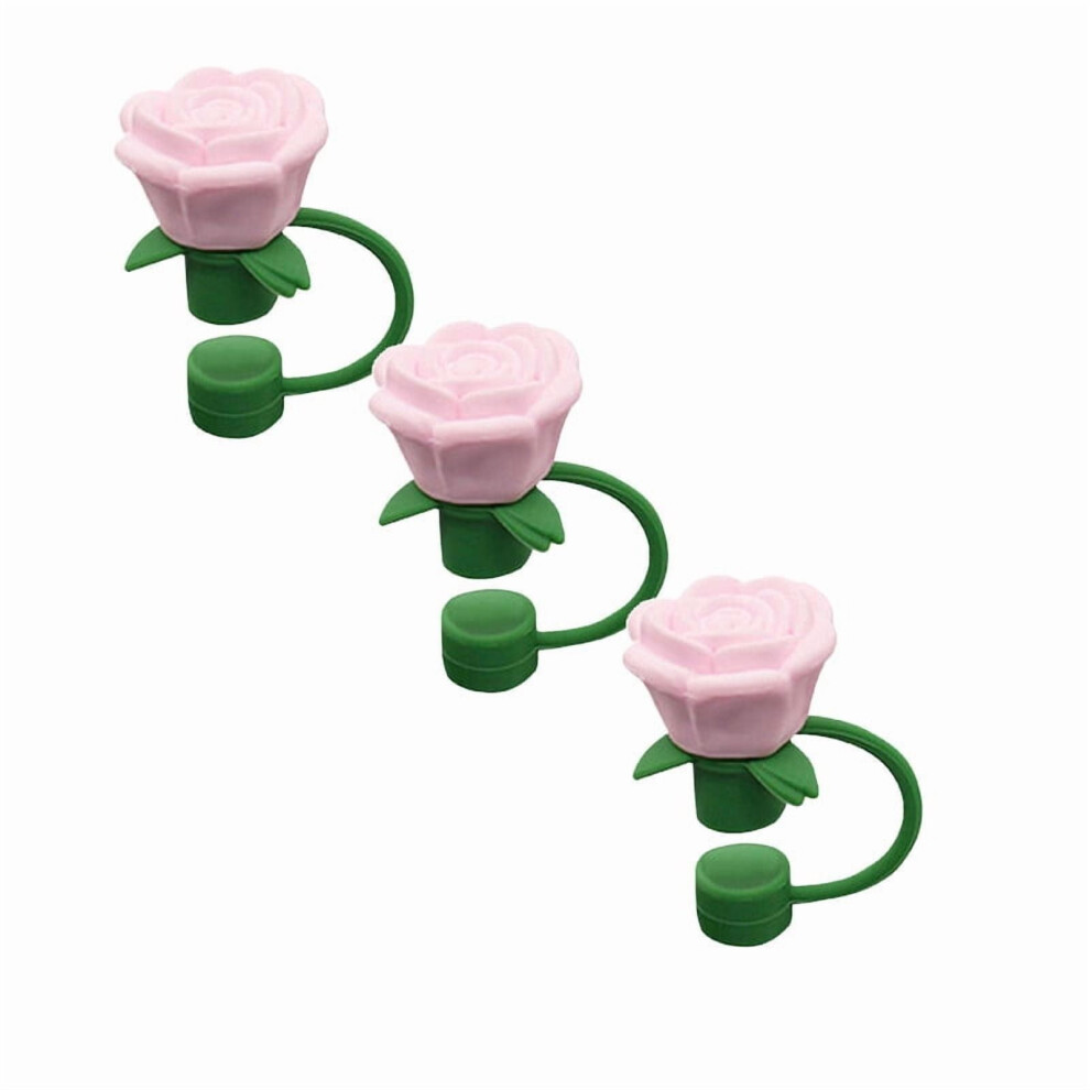 3PCS Rose-Shaped Silicone Straw Covers, 10mm, Compatible with Stanley Cup 30/40 oz (Pink)