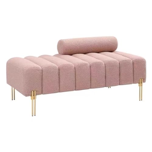 Bed End Stool Foot Seat Upholstered Tufted Bench with Upholstered Seat, Foot Stool with Sturdy Metal Legs, Leather Bench for Bedroom Living Room Entrance Bedroom Bedside Stool(Pink,120**40*43cm)