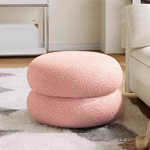 IUBGFTO Ottoman Stool Nordic Small Stool Round Footstool Makeup Stool Footrest Ottoman Modern Minimalist Shoe Changing Stool Living Room Shoe Stool (Pink)