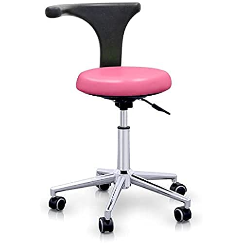 QUIRUMED Professional Ergonomic Backrest Stool, Pink, Stainless Steel Frame, Leatherette, Base with Wheels, Adjustable Seat in Height, Up to 120 kg