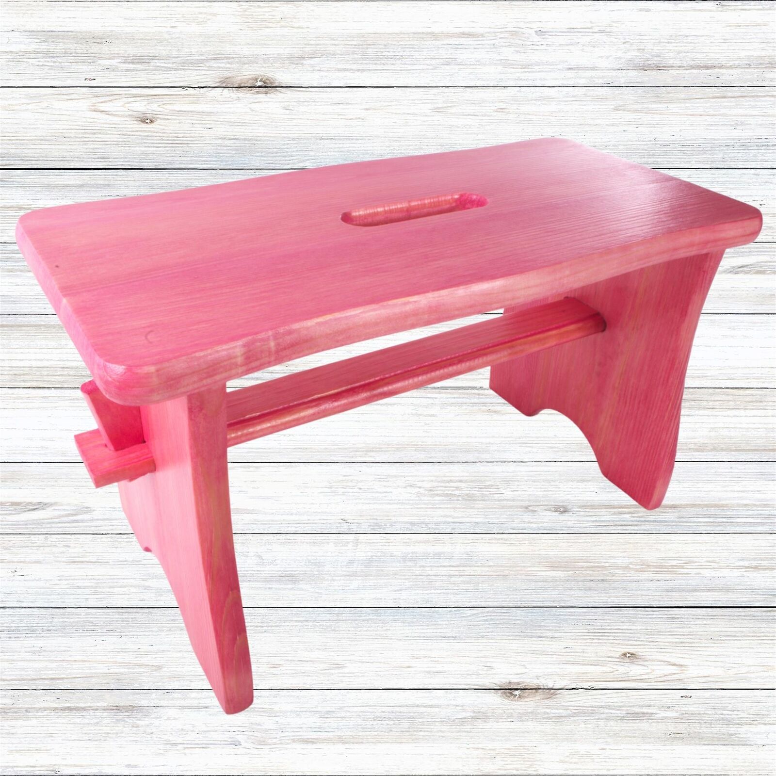 Pink Small Wooden Stool Hand-Stained Natural Pine Side Bench Wood Kids Step