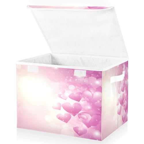 YZCIS Christmas Baskets Collapsible Storage Bins with Lids, Valentine Pink Hearts Storage Boxes Clothes Baskets for Organizing