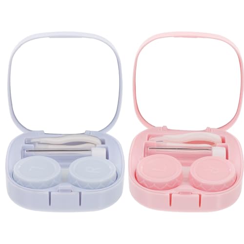 VILLCASE Portable Contact-Lens Case 2Pcs Set with Smooth Curved Design, Sturdy Wear-Resistant Household Contacts Holder for Travel and Daily Use, Includes Blue and Pink Storage Boxes