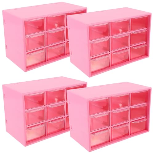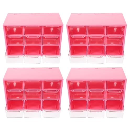 Alipis 4pcs Pink Drawer Style Storage Boxes 9-grid Plastic Organizer for Jewelry Makeup Beads Craft Supplies Desktop Storage Case for Office and Home