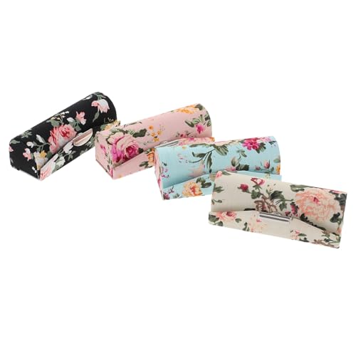 POPETPOP 4pcs Retro Floral Lipstick Cases with Mirror, Embroidered Cloth Lip Balm Holders in Red Black, White, Blue, Pink – Women’s Cosmetic Storage Boxes for Travel and Daily Use