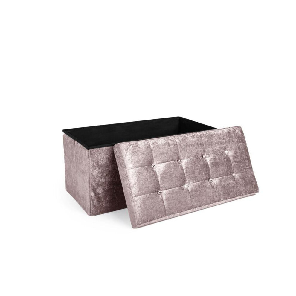 (Crushed Velvet Blush Pink, 76X35X35cm) Foldable Storage Boxes with Lid 38x38x38cm & 76x35x35cm Organiser for Home Storage Solutions