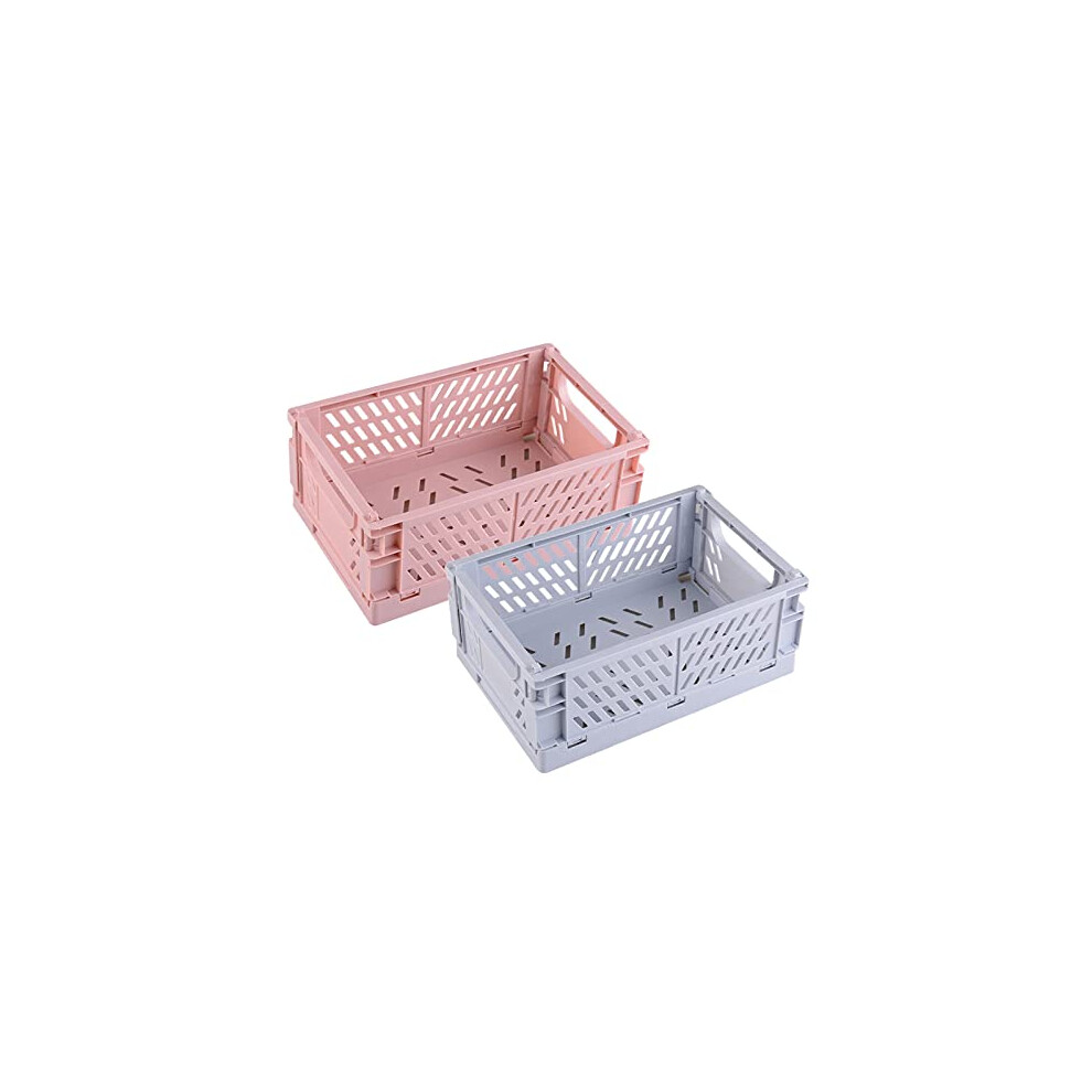 Pink Storage Basket 2 Pcs Collapsible Crate, Folding Storage Box, Pink Storage Boxes, Folding Crates Plastic for Store Cosmetics, Stationery and Pink
