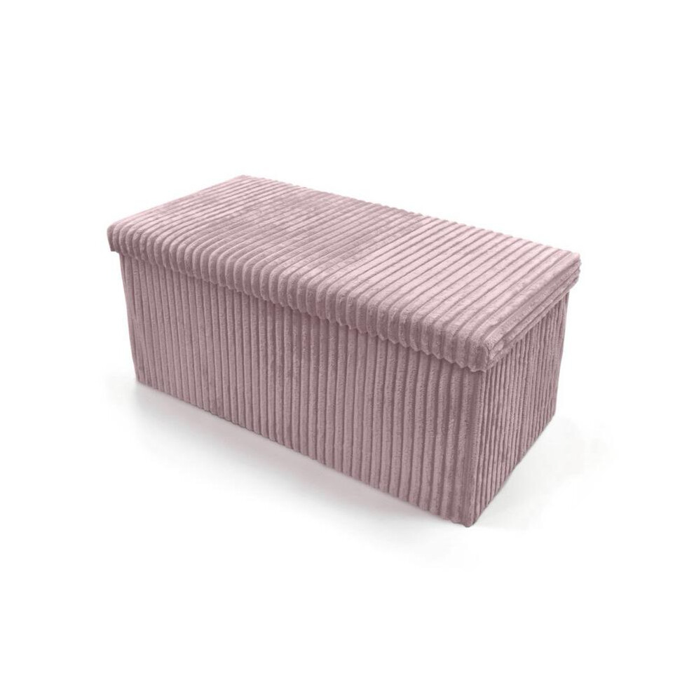 New Foldable Storage Boxes Seat Foot Stool Crushed Velvet and Corduroy Material Ottoman Storage Box with Lids for Kids Toys Bedroom Hallway Living Room (Corduroy Blush Pink, 78 x 38 x 38 cm)