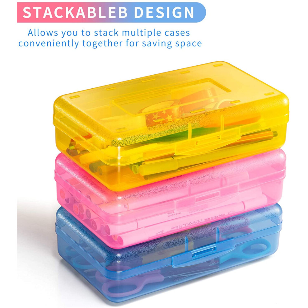 Artful Organization, Transparent Pink Yellow Blue Storage Boxes, Compact Lightweight Design For Easy Carriage Pencil Cases For Kids And Adults