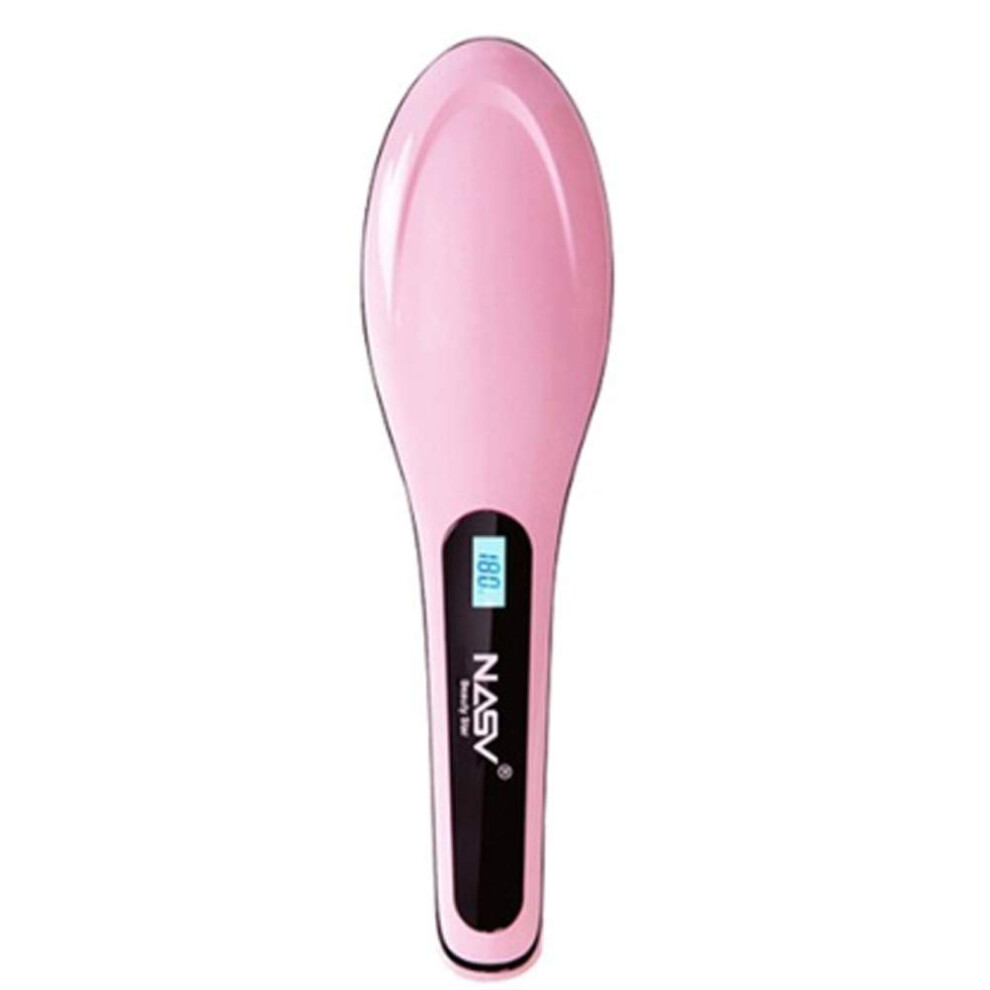 (pink) Portable Hair Straightener Brush With 3-speed Temperature Control