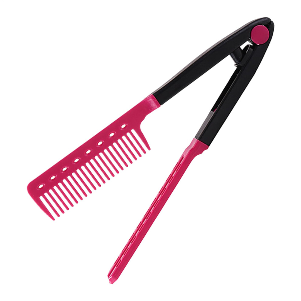 V Shaped Hair Straightening Comb Hot Pink Straightener Brush for Smooth Styling Home and Travel