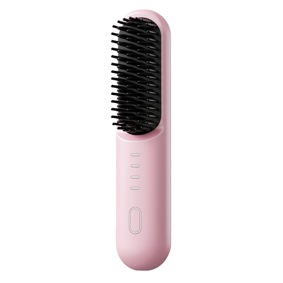 Pink Hair Straightener Brush, 1500mAh Lithium Battery, Dual Use Styling Comb