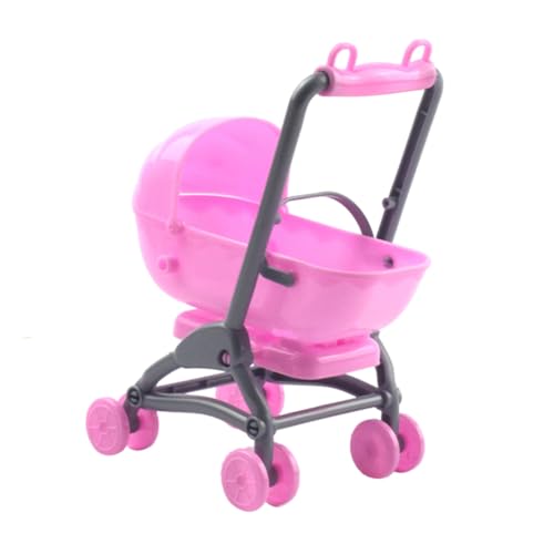 Veemoon Doll Stroller Accessory Mini Plastic Pushchair for Dolls Playset Pink 1pcs Model Suitable for Dollhouse Pretend Play
