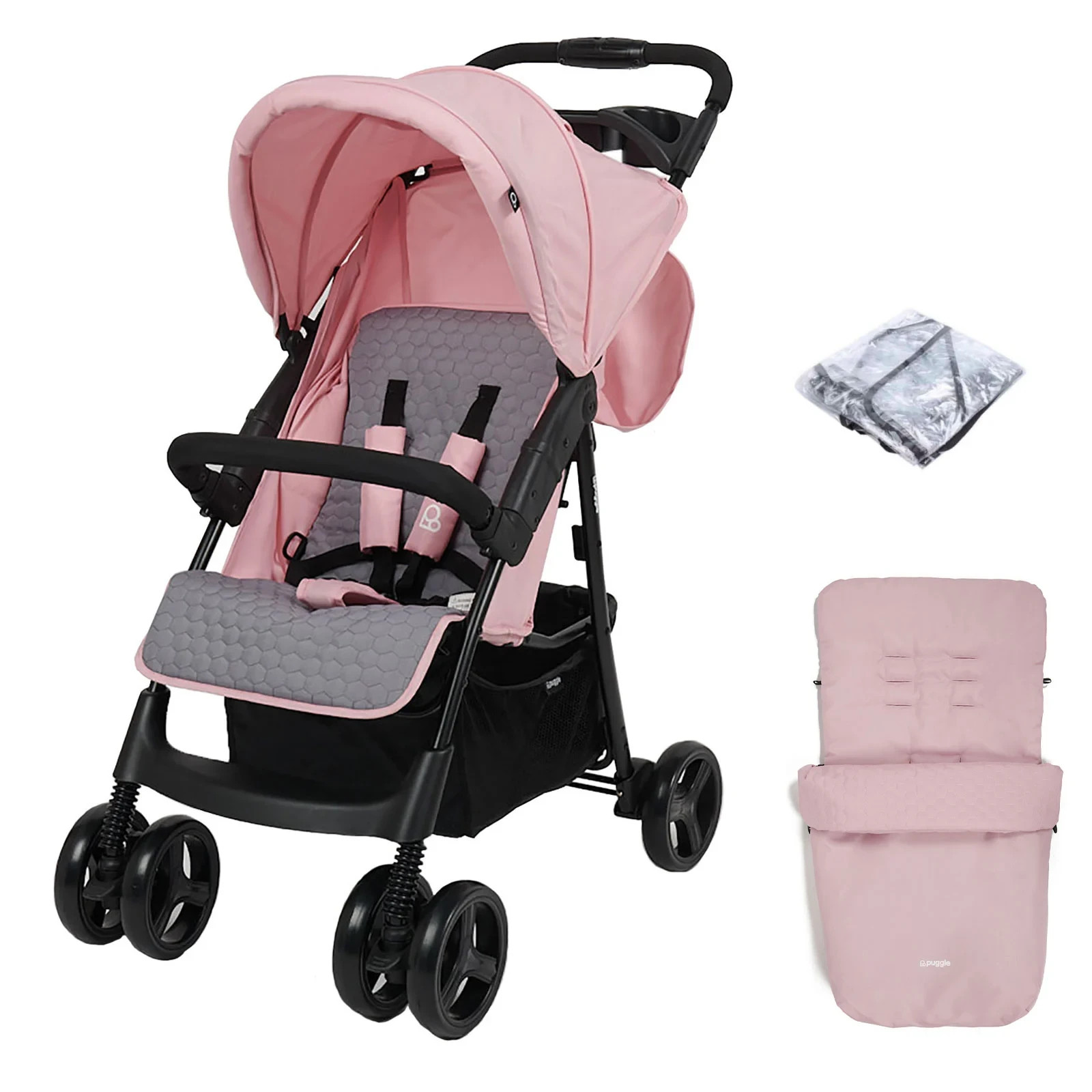 Baby Stroller Puggle Toddler Pushchair With Raincover And Footmuff BUNDLE PINK