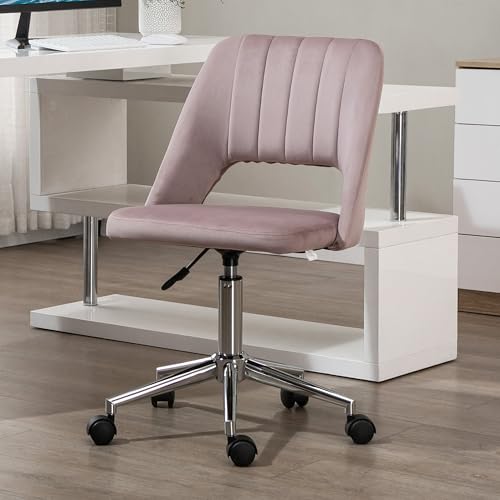 (Pink) Modern Swivel Office Chair, Dressing Table Chair,Pink Chair,Height Adjustable Padded Armless Desk Chair, Makeup Vanity Chair, Home Office